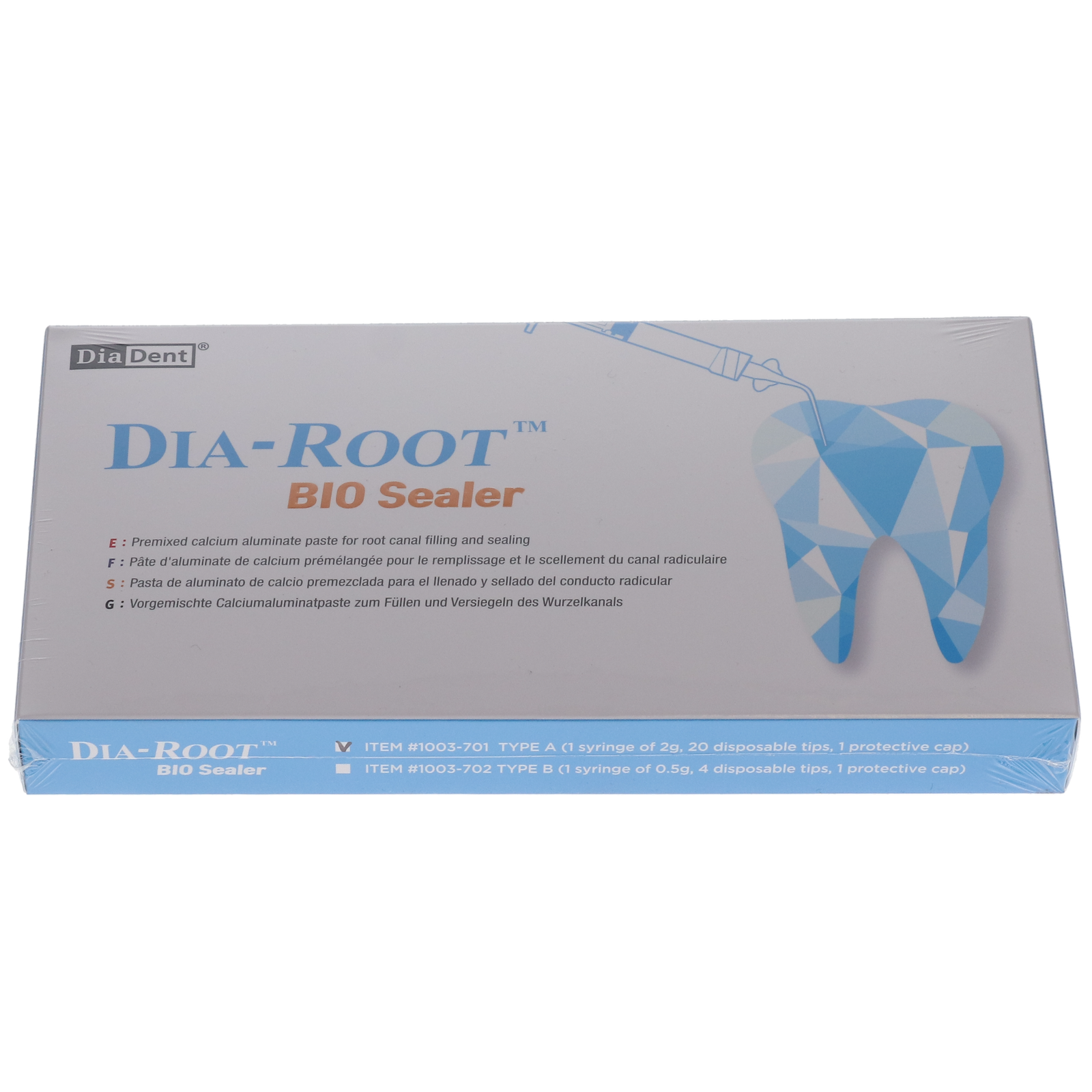 Dia-Root™ Bio Sealer is a pre-mixed bioceramic calcium silicate-based MTA sealer. Its non-shrinking feature and strong bonding ability make it the perfect sealer for permanent obturation and suitable for all obturation techniques with gutta percha.