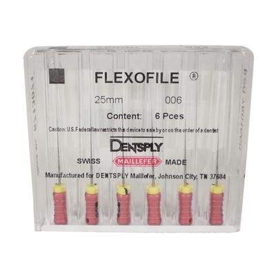The FlexoFile® hand file combines the best stainless steel technology with enhanced flexibility perfect for endodontic, root canal or other procedures requiring cleaning and shaping of the most curved and narrow canals. All files are pre-sterilized and available in different color-coded handles.