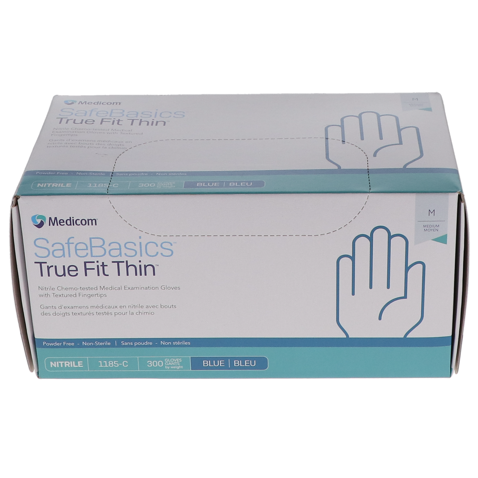Medicom SafeBasicsâ„¢ True Fit Thinâ„¢ Nitrile Powder-Free Exam Gloves Blue 300/box Large 1185