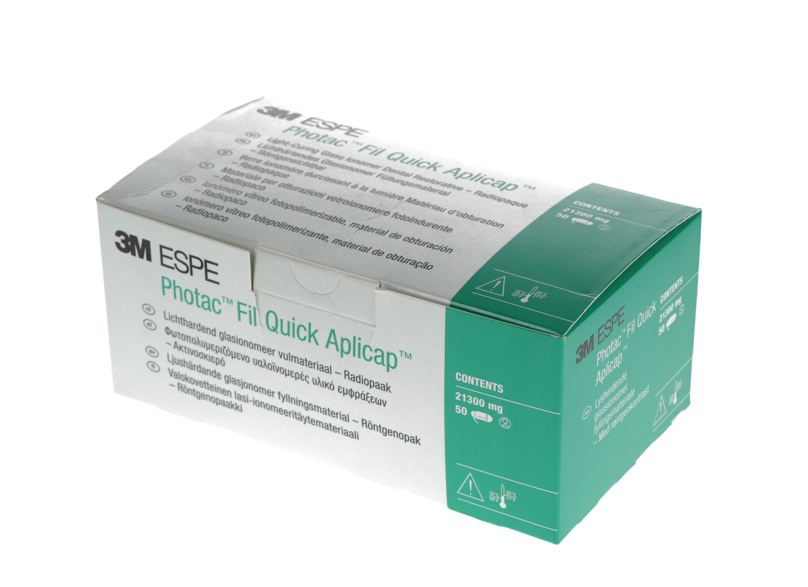 Photac-Fil Quick Aplicap Capsule is a biocompatible, radiopaque, and resin-modified glass ionomer that eliminates the need for bonding and cavity conditioning. The self-adhesive material has outstanding conservative cavity preparation properties and high fluoride release applicable for geriatric and pediatric patients.
